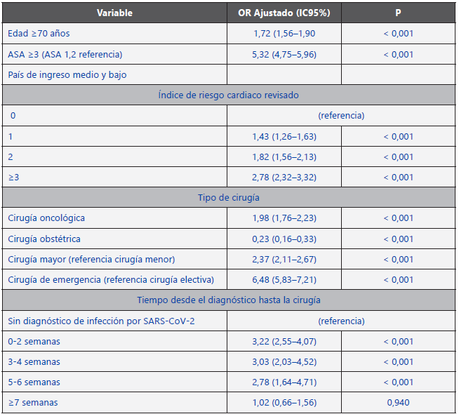 Tabla 2. Modelo ajustado de mortalidad posoperatoria a los 30 días (COVIDSurg-GLOBALSurg collaborative