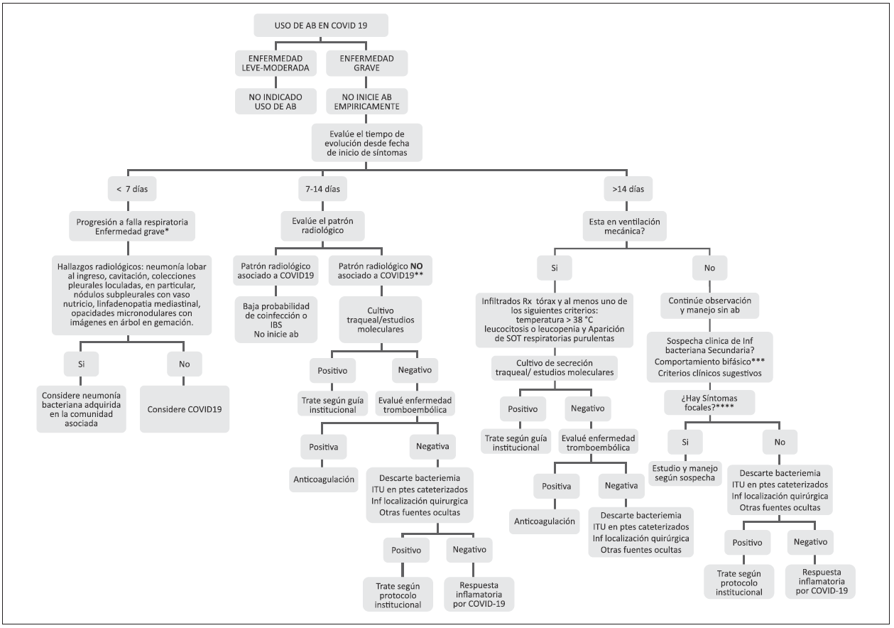 ** Se refiere a un patrón atípico para infección por SARS-CoV-2/COVID-19 que incluye: neumonía lobar sin opacidades en vidrio esmerilado, cavitación, derrame
