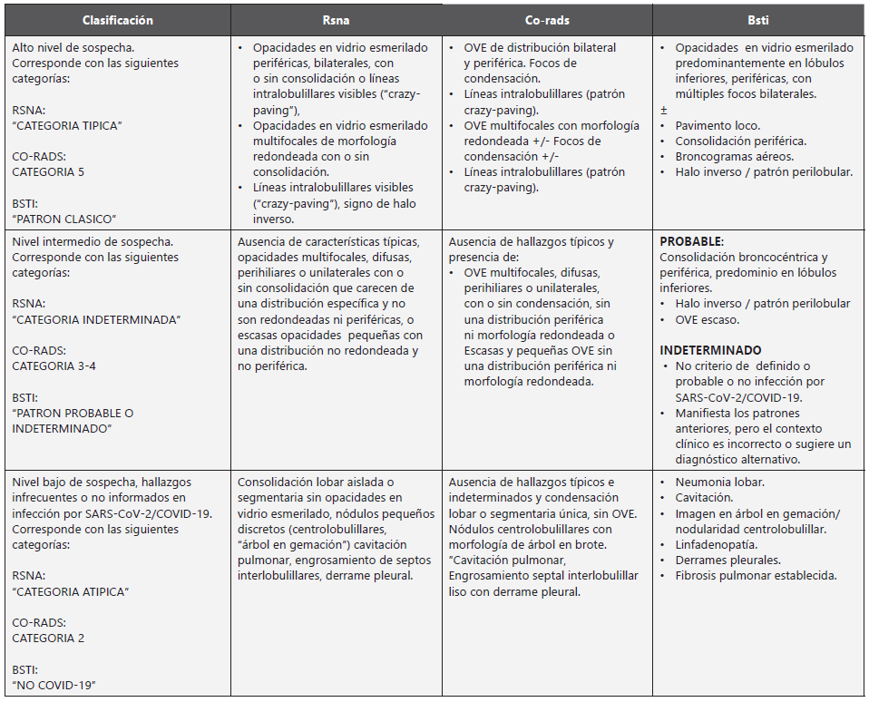 Tabla Clasificación hallazgos radiológicos