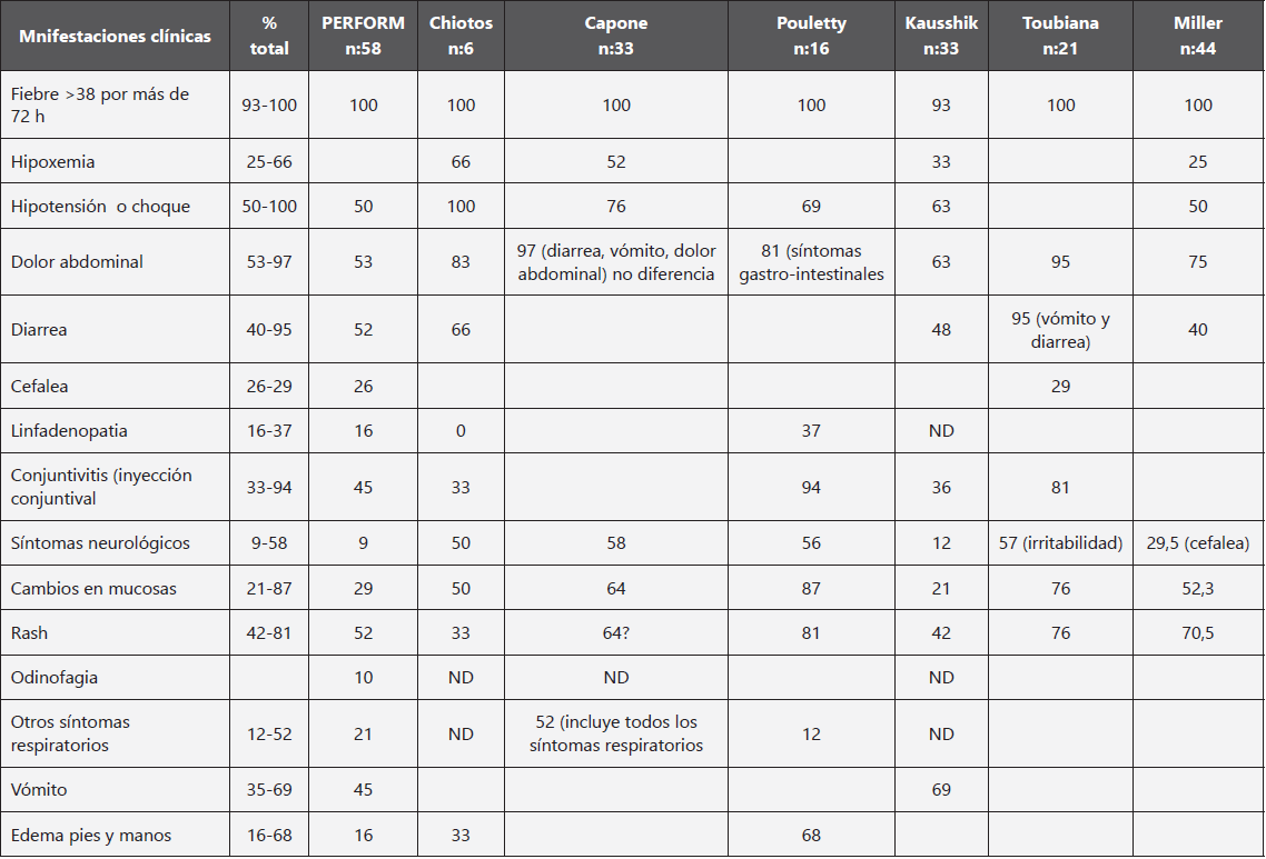 Tabla 1. Manifestaciones clínicas en pacientes con SIMS-TAC